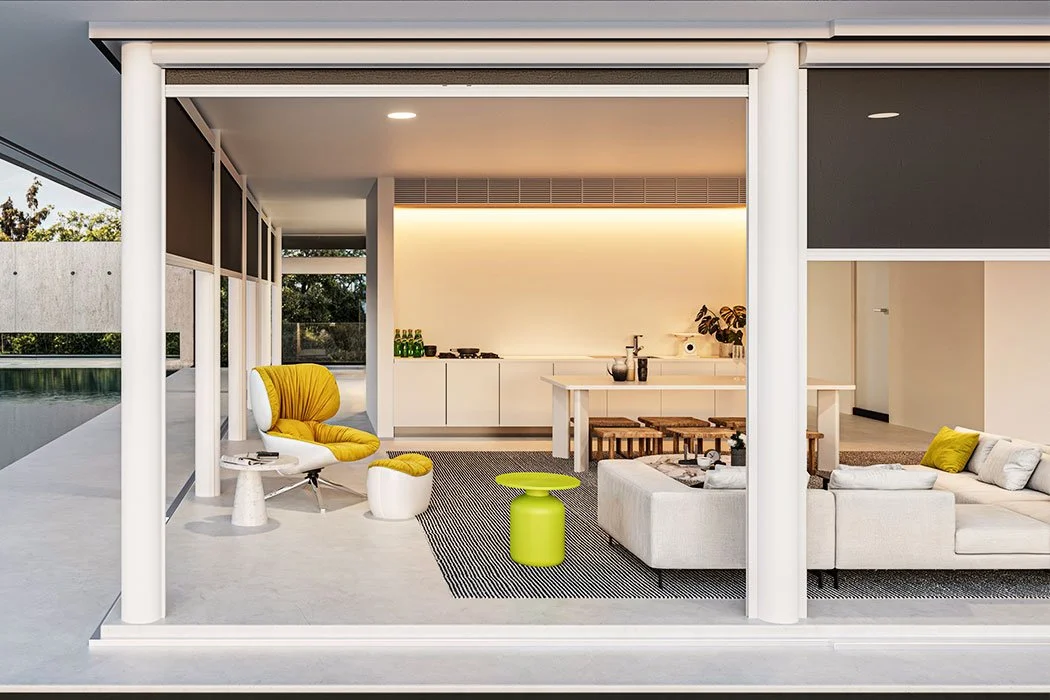Slidetrack Outdoor blinds protect from rain, hail and wind, turning outdoor spaces into functional and modern living areas for year-round enjoyment.